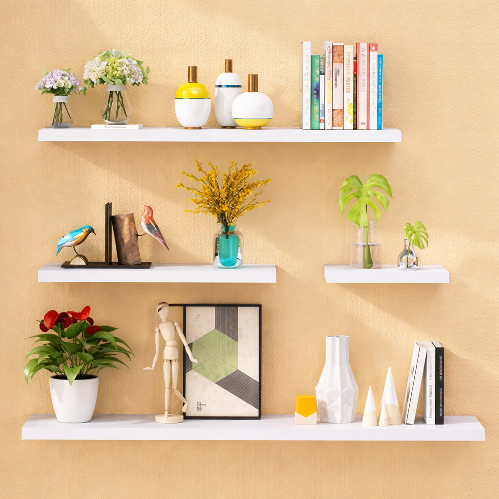 Space-Saving Floating Wall Shelves for Home & Office – Set of 4